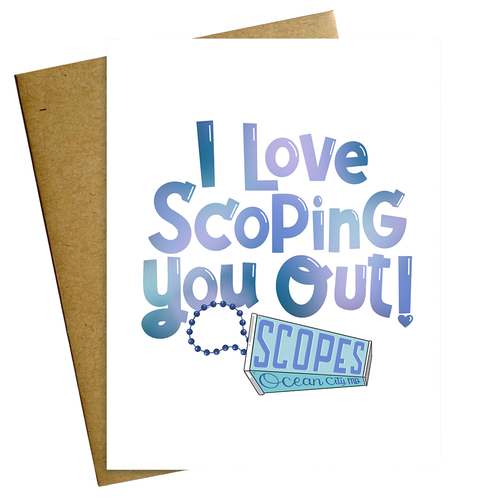 Bring back the nostalgia of viewing photos with family and friends Downy Oshun through your Scopes viewer with our I Love Scoping You Out card. Perfect way to say I Love You hon' and I Love Checking You Out. Vertically printed 4.25" x 5.5" with Kraft envelope included.