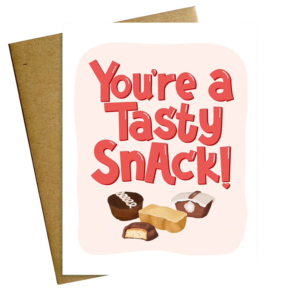 Celebrate your favorite Tastykake lover with this cheeky Valentine card that declares their deliciousness. Perfect for anyone who appreciates Philadelphia's iconic snack cakes, let them know they're more than just a snack—they're absolutely irresistible. Vertically printed 4.25" x 5.5" with Kraft envelope included.