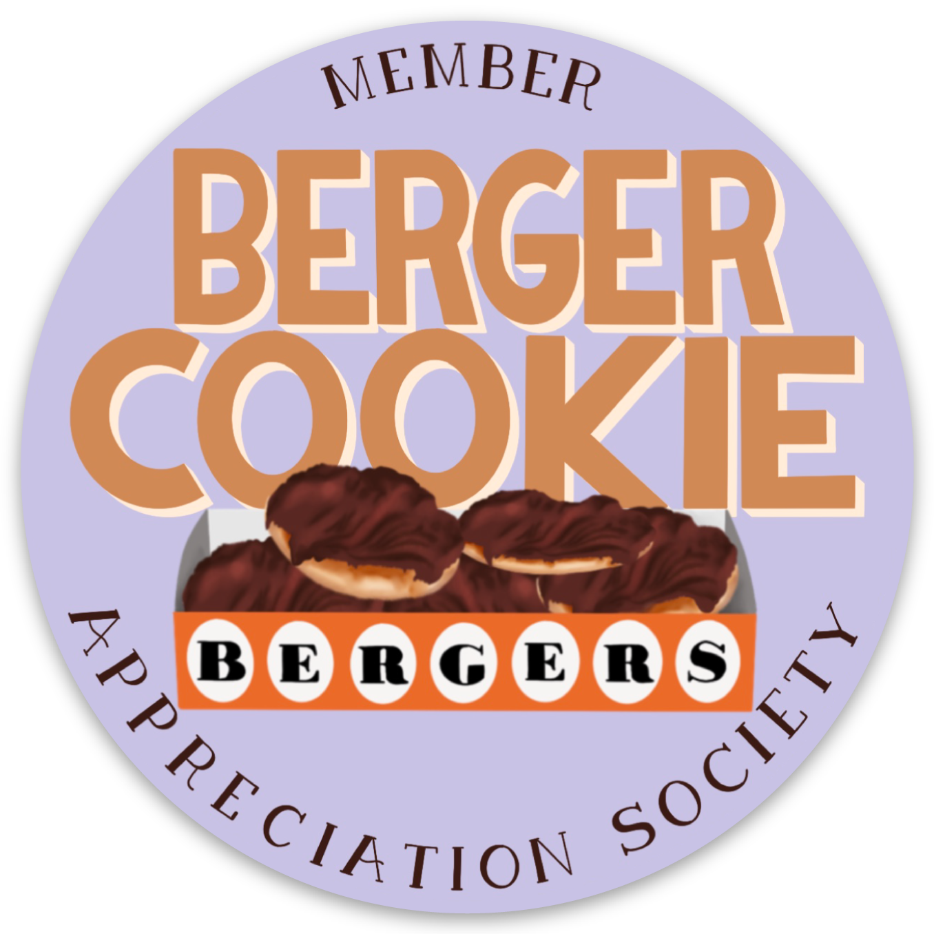 Show off your love for this iconic fudgy cookie and that you are a card carrying member of Baltimore's Berger Cookie Appreciation Society. Sticker is Die cut 3" x 3" and will look great on water bottles, laptops, notebooks, and Moore!
